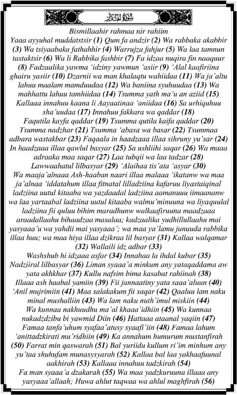 Surat Al Muddassir Tulisan Arab Saja – المدّثّر