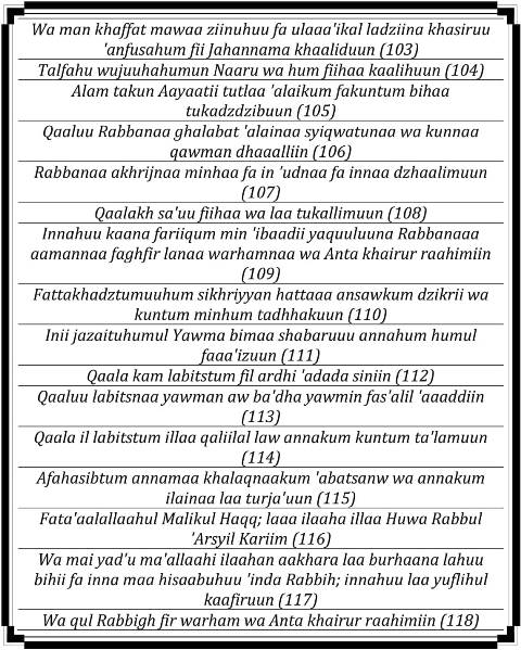 Surat Al Mu’minun Tulisan Latin Saja – المؤمنون‎